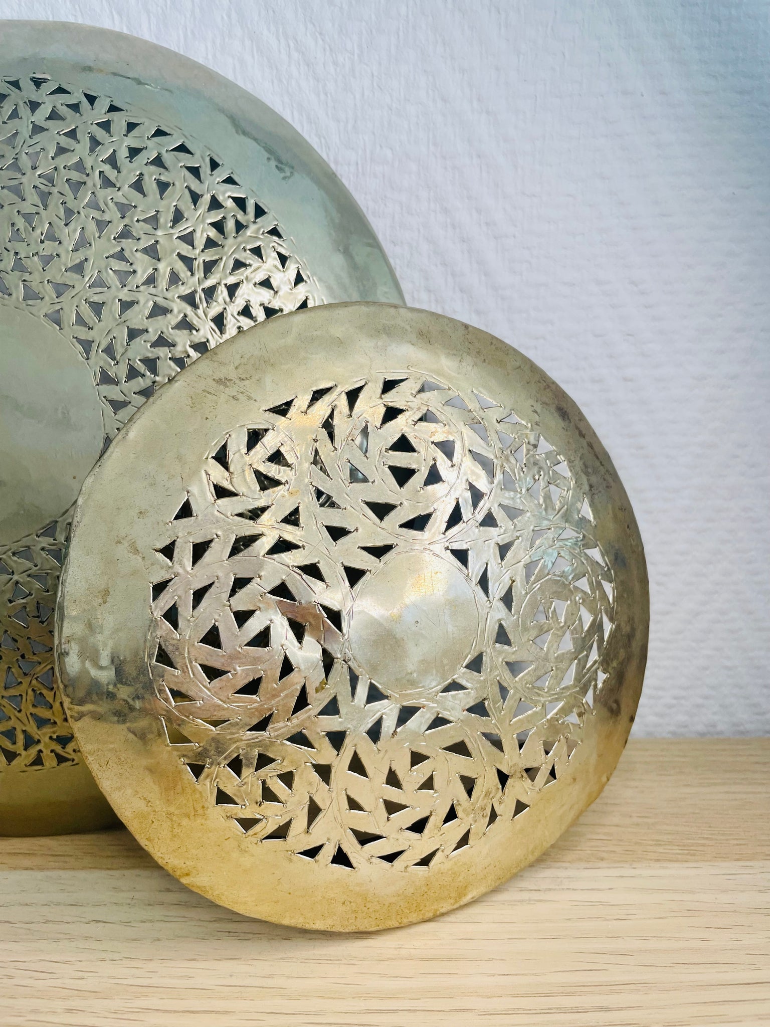 Lot de 2 appliques murales en métal à motifs ajourés, dorées claires