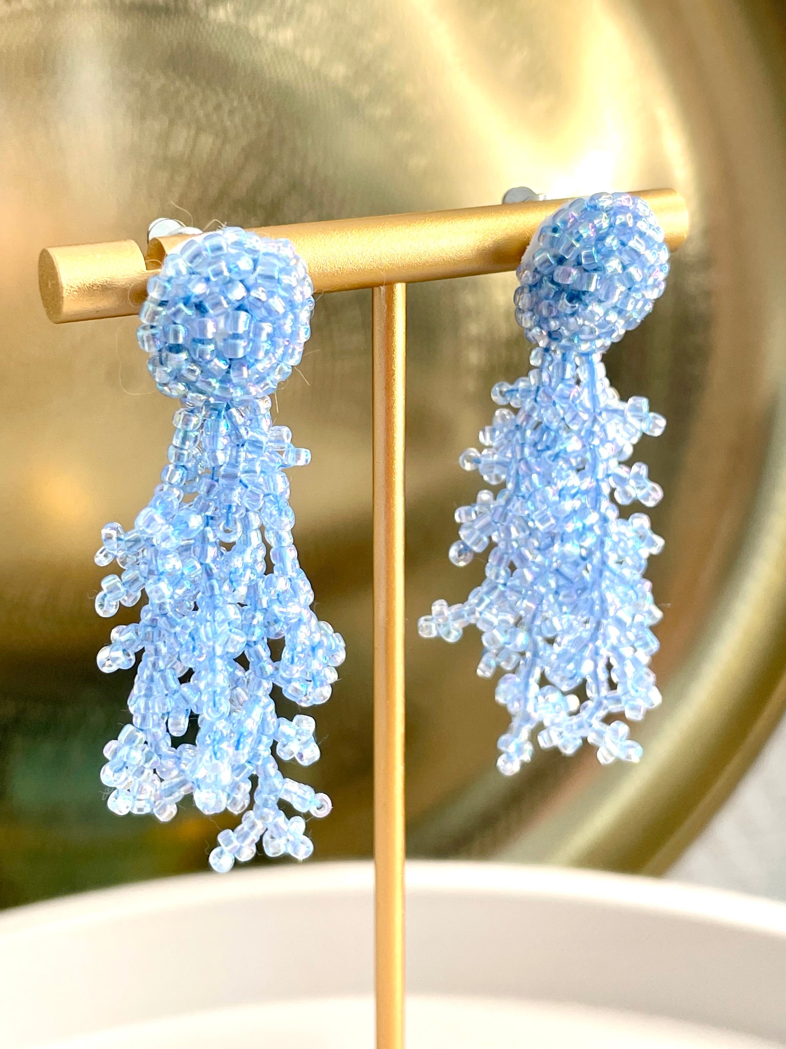 Boucles d'oreilles en perles tissées à motif corail bleu ciel
